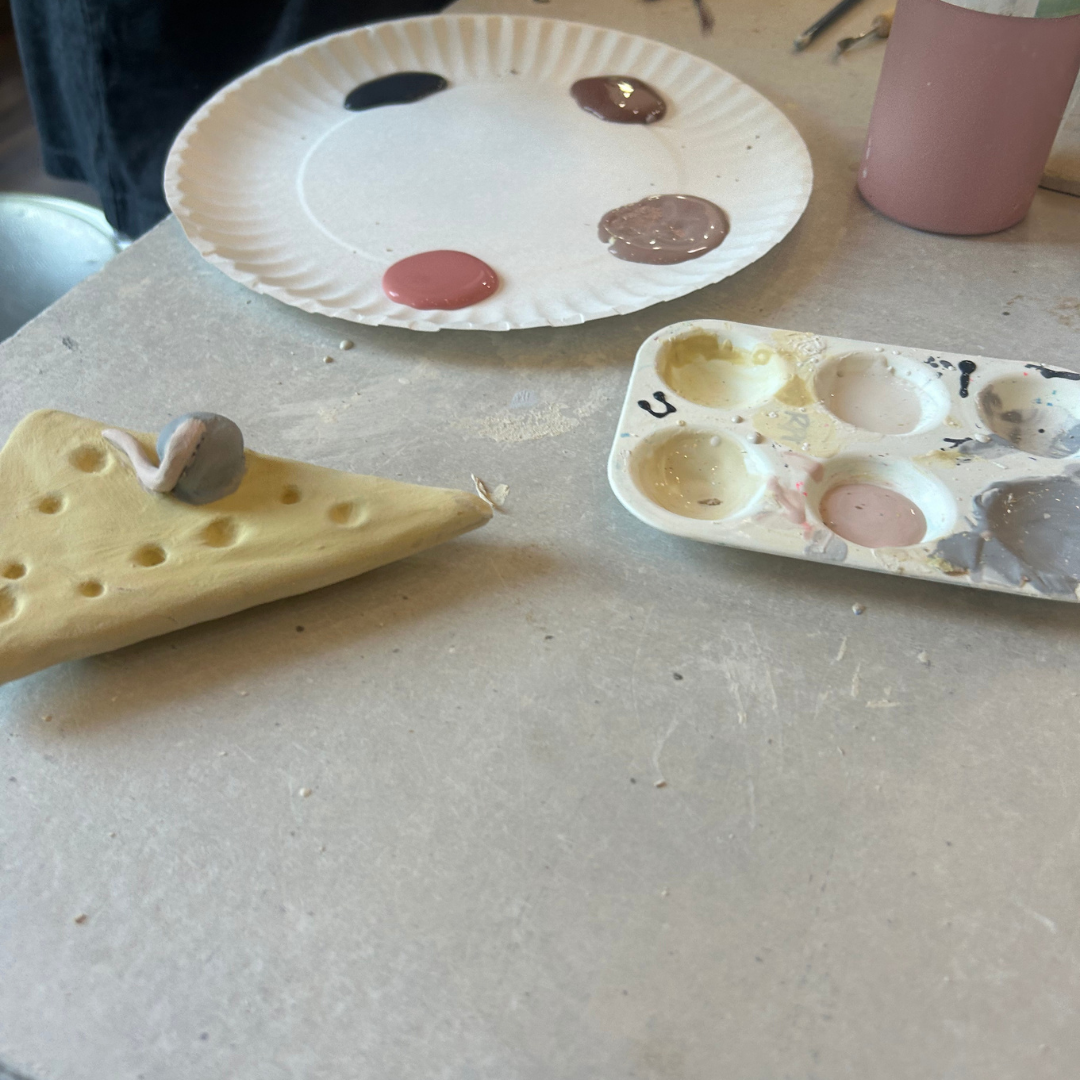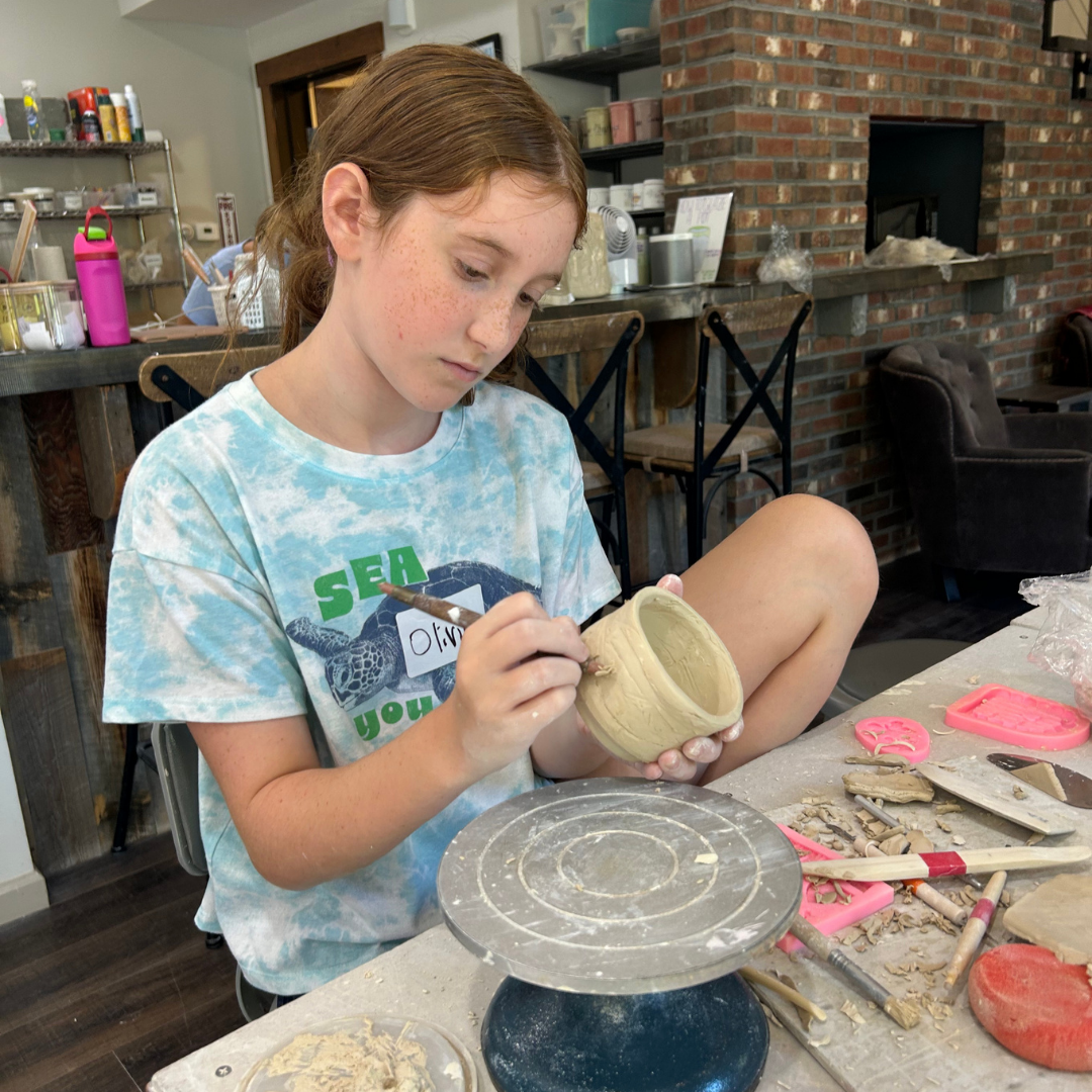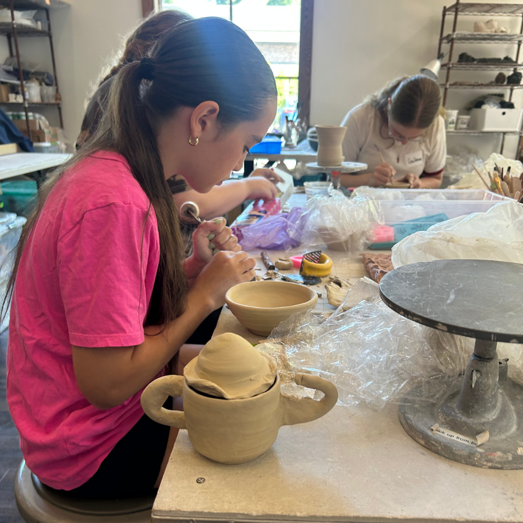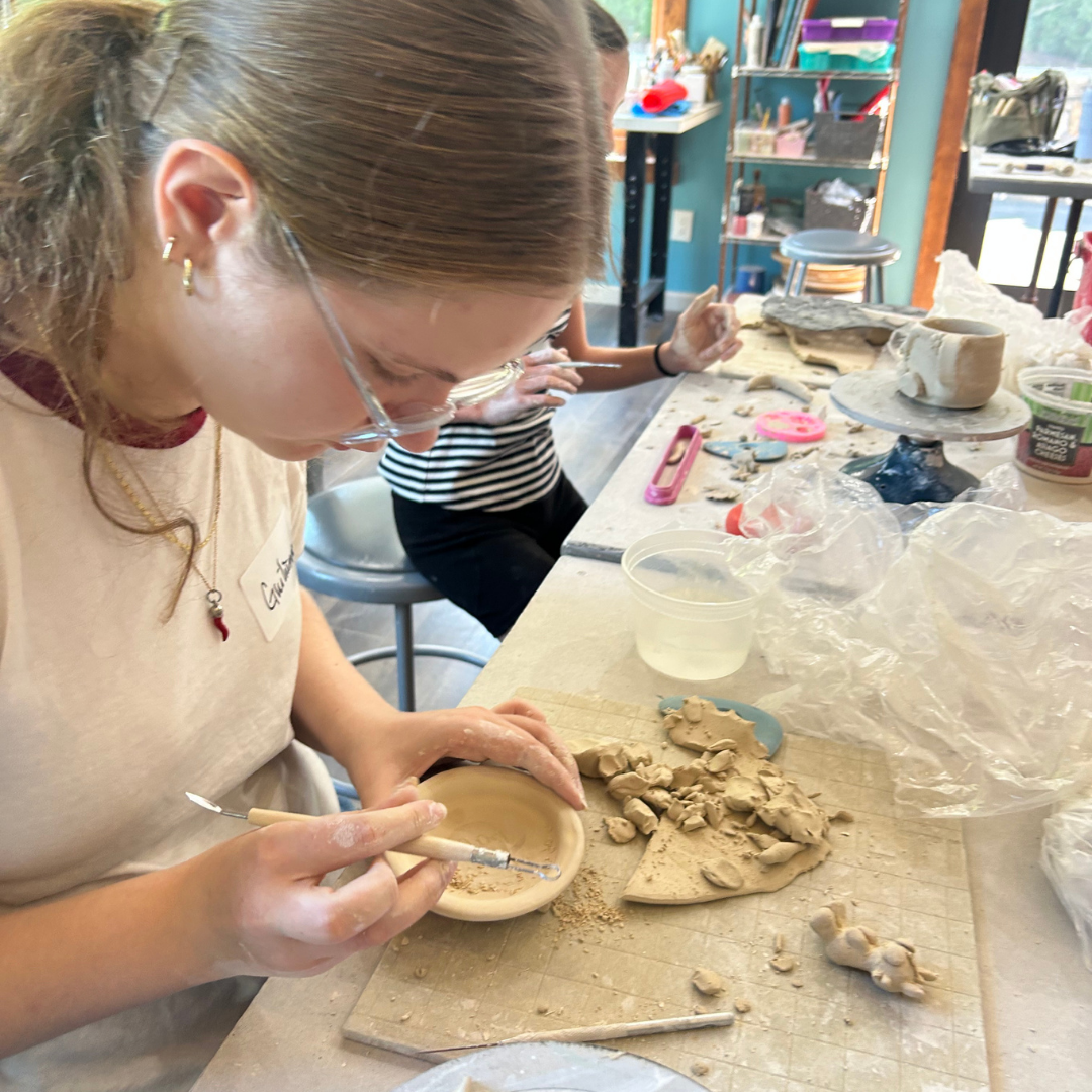 In addition to working at the desk at Railyard Arts, Kellie is an art teacher, graduate student, and artist. She received her Bachelor’s in Neuroscience with a Minor in Art from Lafayette College. Kellie is currently also pursuing her Master’s in Mental Health Counseling while working at Railyard. Kellie’s background is in working with children with autism. She began working with clay shortly after starting at Railyard in 2023. While she is still practicing her throwing skills, she has fallen in love with handbuilding and making ceramic jewelry. At Railyard, she teaches private lessons and groups working with children of all ability levels in a variety of mediums.