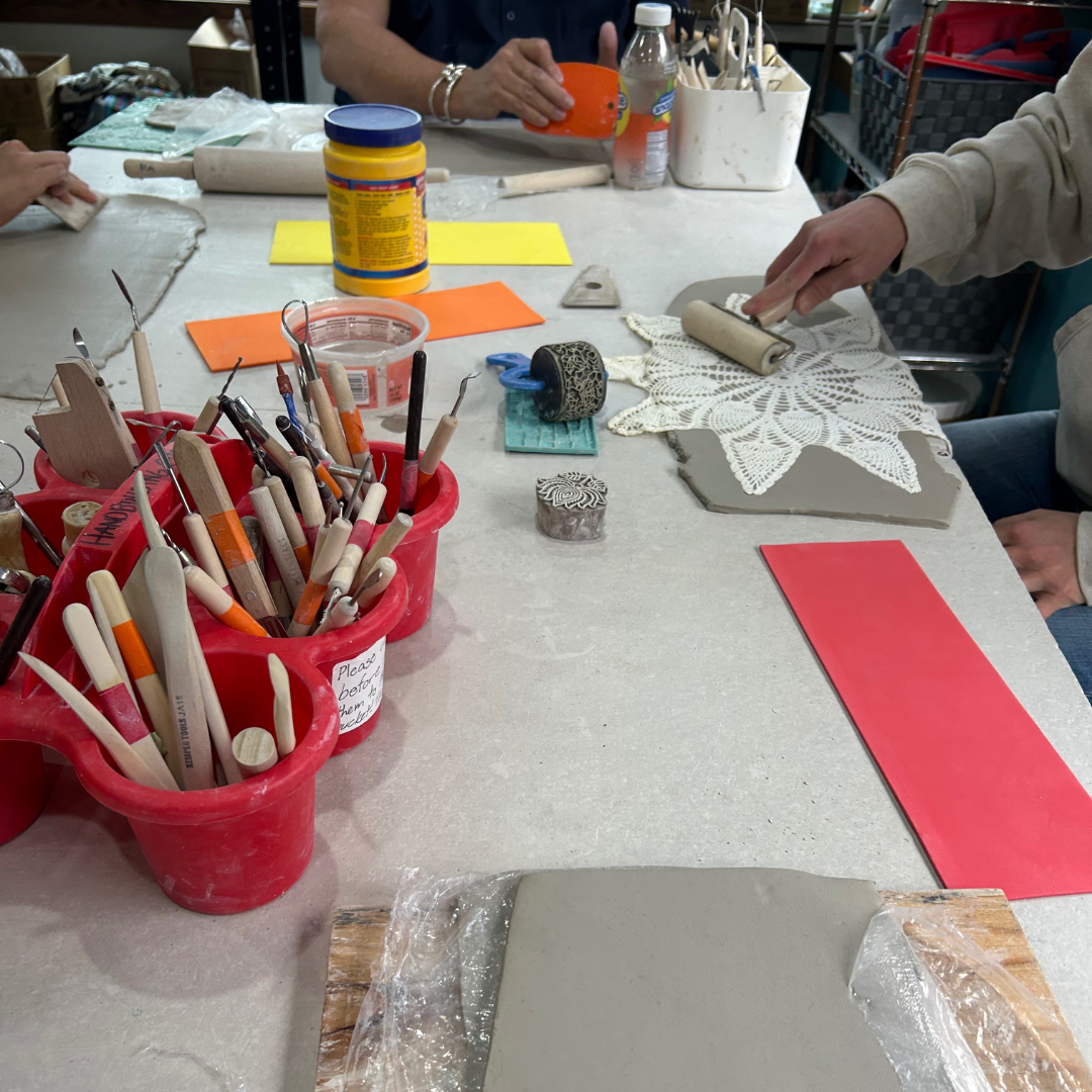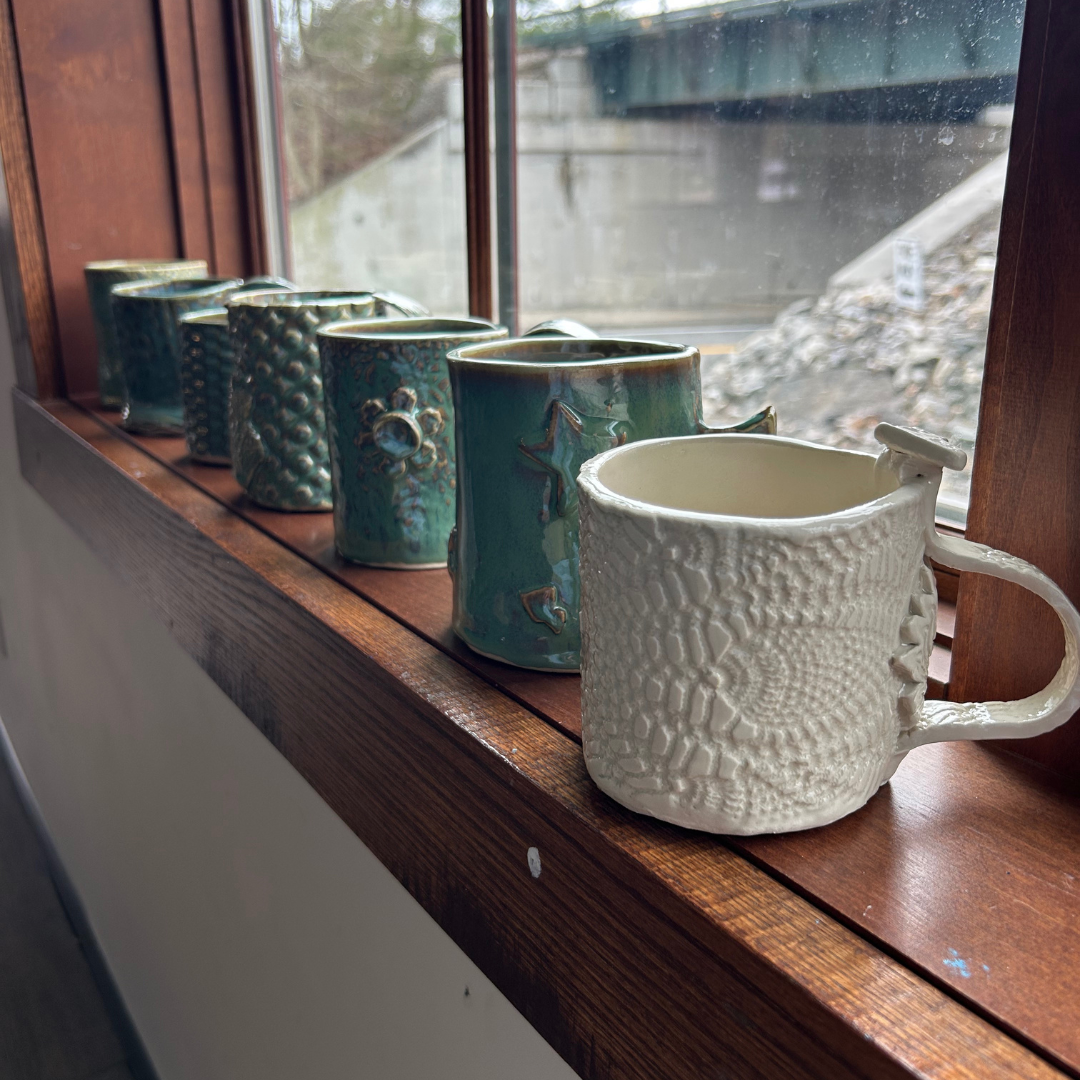 In this one-time handbuilding with clay workshop, you will learn the steps to build your own mug from a slab. You will cut and shape the clay slab to build each piece of your mug, and finish by painting with an underglaze color of your choice. Your mugs will be finished and ready for pick up approximately 2 weeks later.